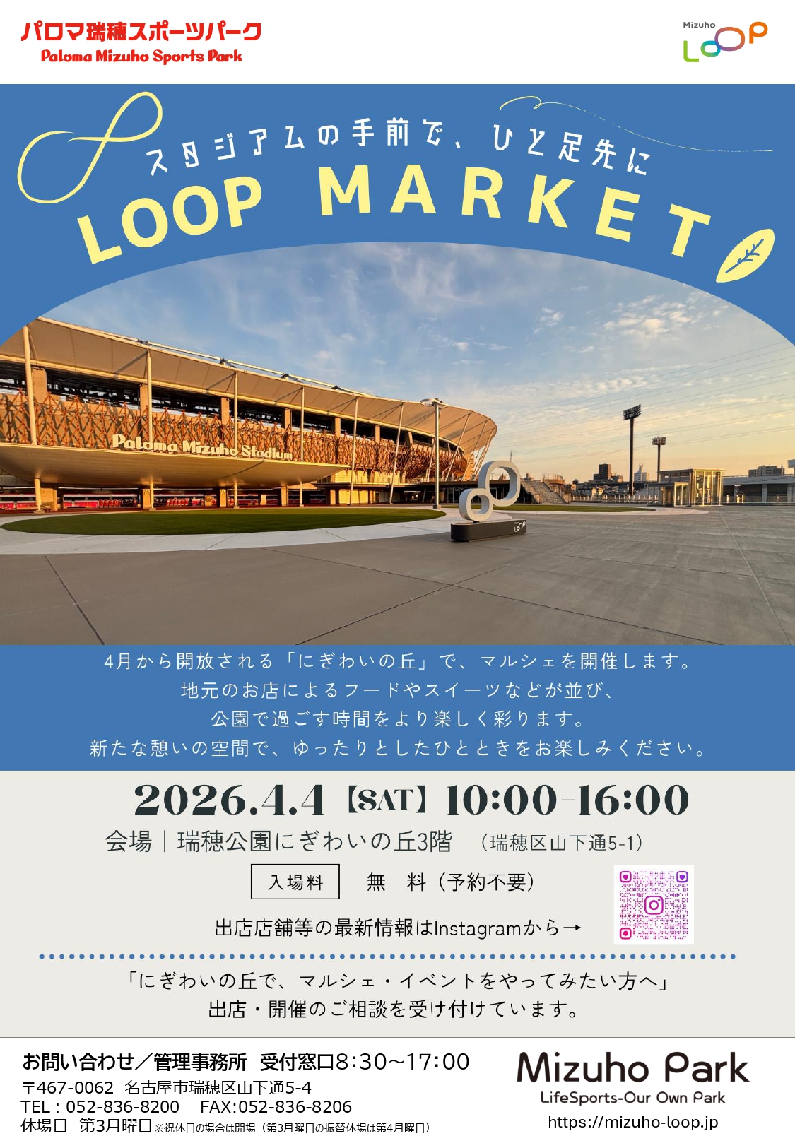 2026年4月4日(土)に、瑞穂公園・にぎわいの丘で「LOOP MARKET」が開催されます!