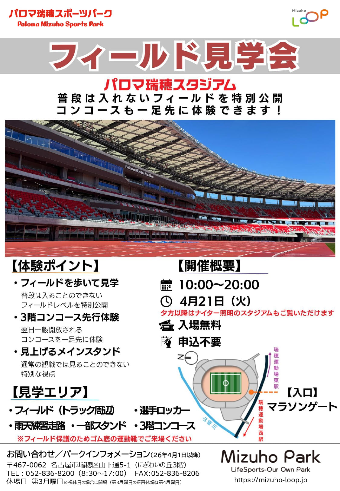 2026年4月21日(火)に、パロマ瑞穂スタジアムで「フィールド見学会」が開催されます!
